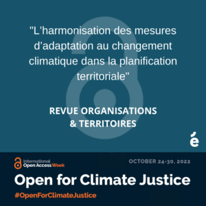 In recognition of International Open Access Week, Érudit is highlighting the importance of access to scholarly publications in the context of climate change. Open and rapid dissemination of research results is a key element in this fight.