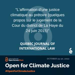 Torre-Schaub, M. (2016). L’affirmation d’une justice climatique au prétoire (quelques propos sur le jugement de la Cour du district de La Haye du 24 juin 2015). Revue québécoise de droit international / Quebec Journal of International Law / Revista quebequense de derecho internacional, 29(1), 161–183.
