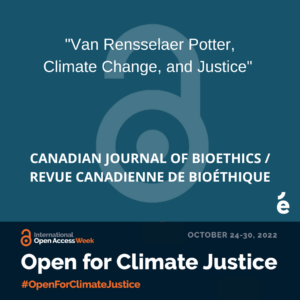 Dwyer, J. (2022). Van Rensselaer Potter, Climate Change, and Justice. Canadian Journal of Bioethics / Revue canadienne de bioéthique, 5(1), 92–102.