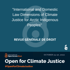 Kronk Warner, E. A. & Abate, R. S. (2013). International and Domestic Law Dimensions of Climate Justice for Arctic Indigenous Peoples. Revue générale de droit, 43, 113–150.
